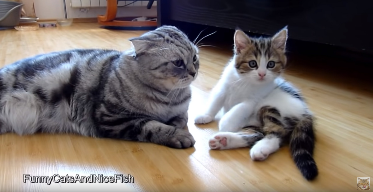 遊んでニャーン!』 構ってほしい子猫が、先輩猫に「猛アタック」した - 猫 体 当たり